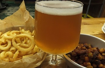 CPIPA *センターポイント1stIPA。香り華やかで苦み控えめ(IBU40)。度数も控えめ(5.4%)で、飲み飽きないタイプ。ポテトフライとチリビーンズを頼んだら、食べきれなかった(涙)。(同左) |