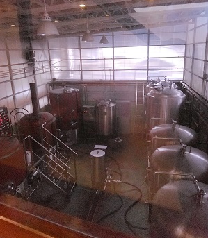 | レストランから廊下を挟んだ向かい側が醸造所。 夕方の時間帯だったからか、どなたも作業はされておらず、 お話は聞けませんでした。 ※ 敷地内の、地中深くから湧き出る温泉水を使ってビールを 造っていると以前、聞いたことがあります。 |