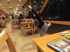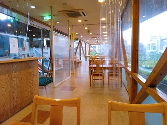 | 階段を上った先の2階がレストラン。 この日は開店時間直後(午後5時)に訪れたため、客は私1人。 小ぎれいで見晴らしの良い、細長い形の店内は相変わらずです。 |