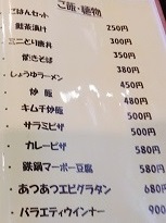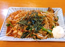 | この日は1人だったので、豚キムチ(380円)と、 塩サバ(380円→250円(おすすめ価格))を注文。 ボリュームがあり、充分うまい。 |