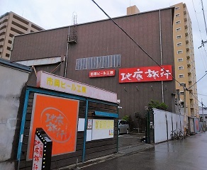 | JR弁天町駅から南方向へ徒歩10分。 大きな看板が見えるので、門をくぐり ガレージの中を通って、レストラン入口を目指します。 |