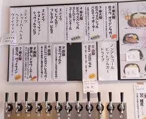 | ビールは12タップで、この日はうち4種類が自家製ビール。 ソーセージや牛ステーキ、チーズ、ナッツ等、ビールに合うアテも有。 |
