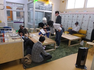 | このとおり、銭湯の雰囲気がそのまま残されていました。 脱衣所だった場所でビール好きたちが、思い思いに飲んでいます。 |