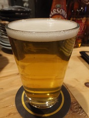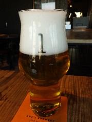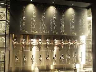 | 開店直後は自家製ビールは1種類でしたが、12月に訪れた際には6種類に増加。ビール名は、「ビールスタイル(3文字の略称)+バッチ数」のシンプルな表記。 | カウンター席もいい感じで、落ち着いて飲める店でしたが、この北浜の直営パブは閉店しました。2020年に心斎橋へ移転・開業しています。 |
