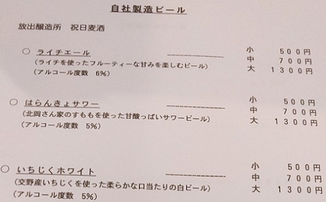 | 下は、訪問時の自社製造ビールラインナップ。 他にゲストビールが3種繋がり、計6タップ。 |