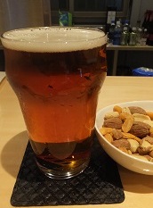 | のまんばAPA *アメリカンペールエール。結構濃色で、飲みごたえあり。アメリカ産の柑橘系アロマホップ使用。(2019.10.26福岡市博多区千代「あすなろブルワリー」) |