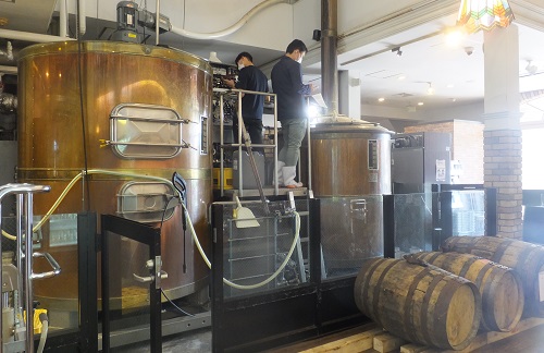 | 訪問時はたまたま仕込みの作業中。 写真を撮り忘れてしまいましたが、おみやげ用の ボトルビール各種やTシャツ等も売られていました。 |