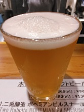 | ヘフェヴァイツェン(クラシックバニーヘフェ) *ヘーフェ=無ろ過。バニラ・バナナ系だが、しっかりした味。(2018.9.12京都押小路東洞院「Takumiya」) | アメリカンペールエール(クラシックバニーAPA) *これもしっかりボディで、IPAに近い味わい。うまい。(2018.9.19京都東山「BEER Komachi」) | セゾン・ドゥ・ラパン *フレンチ料理のシェフと共同醸造。そのまんまセゾン。(2019.1.13宇治駅前「ロッキンハーツ」) | ストロングブラックウィット *自家栽培のゆずと、チョコレートモルト使用。ドライ。(2019.4.17京都東山「BEER Komachi」) |