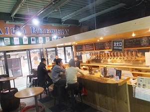 | 3階がタップルーム。 提供はビールのみで、つまみは持ち込み自由というスタイルです。 |