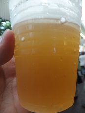 アジアンビューティびわラガー *甘酸っぱいびわの風味に、ラガー酵母が負けてない。(同左) | ガーゴイルペールエール *ガーゴイルはホップの種類。ストレートな苦みが快感。(2017.10.21京都烏丸夷川「野麦酒店」外国人醸造家イベント) |