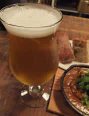 | パブリックハウスビター *Alc3.8%。ぐびぐびいきたくなる喉ごしの良さだが、ゆっくり味わうのが吉。(2017.8.25京都木屋町「TAIGU」) | エクアノットIPA *エクアノットはホップの種類。苦み強めのIPA。(2017.8.29同左) |