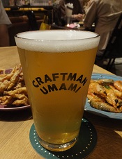 | 黄金IPA *麦芽は英国産マリスオッター、ホップはアメリカン5種。しっかり苦く、Alcも7%、飲み応え充分。後にくる柑橘系の香りも秀逸!(2019.8.5大阪中崎町「CRAFTMAN UMAMI」) |