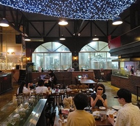 | 温泉やホテル等があるリゾート施設の、御殿場高原「時之栖(ときのすみか)」。 家族連れに人気なバイキングレストラン「麦畑」でもここの地ビールが飲めるけど、 心ゆくまで堪能するなら、「GRAND TABLE(グランテーブル)」1択でしょう。 三島駅や御殿場駅から無料のシャトルバスが出ています。 |