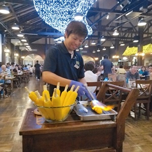 | 目の前でトウモロコシを焼いて回ってくれるお兄ちゃん。いい仕事してました。 | ||||