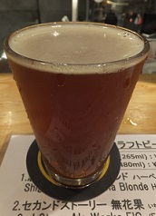 | ベルジャン梅エール *始めはそうでないが、飲み進むにつれ少しずつ感じる梅の風味。それなりではある。(2019.3.2京都「Takumiya」) |