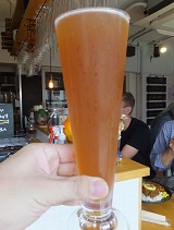 | スモークエール *確かにスモーキーだが、桜のチップで燻製しているとのことで、軽めで飲みやすい。(2018.7.28杉並区高円寺「アンドビール」にて) |