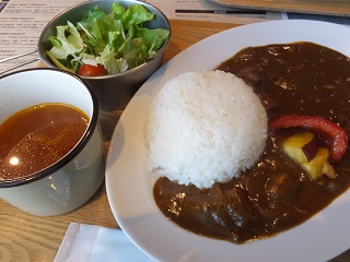| この日は10数年ぶりに会った友人と旧交を温めるべく、ビールは2杯にとどめ、カレーランチ(ドリンク付1000円)を戴きました。他にもグリルチキンバーガー等、4種類のランチあり。 | 夜はバーベキューメニューがメインだそうで、気持ちよさそうなテラス席も。 暖かい季節になったら、またゆっくりと訪れたいものです。 |