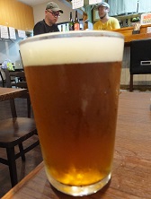 コールドブリューエール *かなりコーヒーの風味が強く出ているが、うまい。(同左) | やつのブロンド *Alc4.4%、IBU11の、飲み飽きないブロンドエール。上の右は、ブルワー兼オーナーの馬場さん(左は、かなり濃い常連客の方)。(同左) |