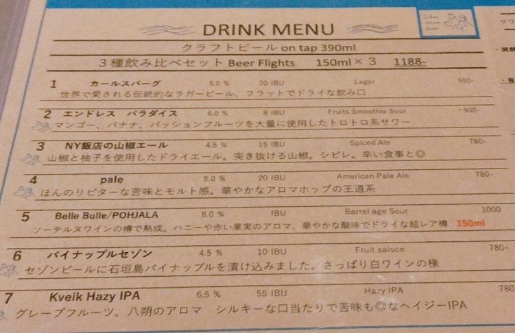 訪問時の樽生ビールラインナップ。2〜7が自家製ビールです。