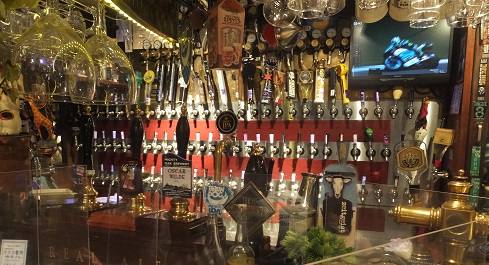 | タップ数は70以上か?これだけあると店員も覚えるのが大変でしょう。 この日のラインナップは両国麦酒が15種、ゲストビールが40種以上。 |
