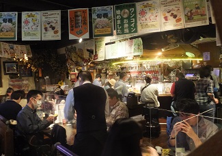 | 店内は満席。客席の間隔は殆どなく、 狭い通路を店員がビールを持って走り回っていました。 |