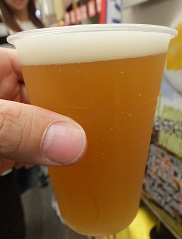 *ヘイジーIPA。やわらかな口当たりだが、シトラスが強め。【B】(2025.8.16大阪難波「真夏のなんBarマルイ〜魅惑のちょい呑みフェスタ〜」) |