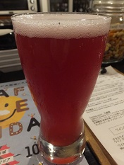 *スムージーサワーエール。酸っぱいが、イチゴやバナナもほのかに感じる。好みではないが、これまでの「うちゅう」のイメージが変わった。(2021.1.4京都東山「BEER Komachi」) |