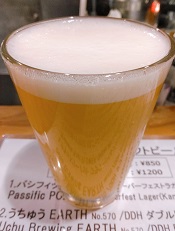 *ウエストコーストIPAだが、「うちゅう」らしくジューシーで飲みやすい。(2019.9.16京都東山「BEER Komachi」) |
