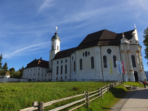 | ヴィース教会はロココ様式の内装がかわいらしく、世界遺産になっていますが、建物内部は撮影自粛のため、心に焼き付けることに。 |