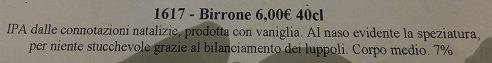 「Cactus Pear」【写真左】はフルーツラガー。 薬草のような香りがする変わり種。 【写真右】は「1617」。 どんな意味でしょう・・?? 日本では江戸時代初期、家康が死んだ翌年ですが・・ 香りと苦みは控えめなIPAでした。 |