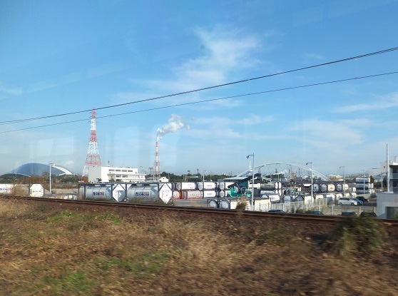 下は四日市駅付近の、車窓風景。工業地域を感じさせる。 |