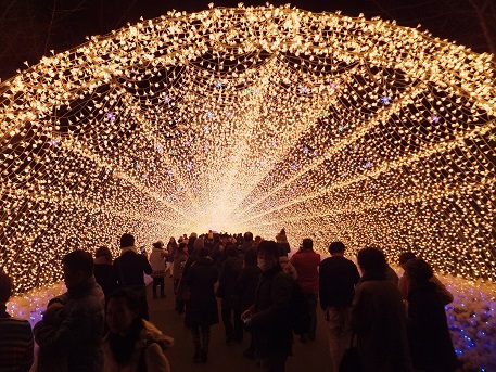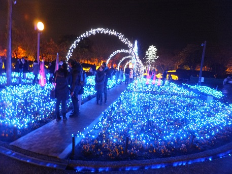| さて、長島地ビール4種類をすっかり満喫した後、帰りのバスまで少し時間があったので、「ウインターイルミネーション」を見学。 |