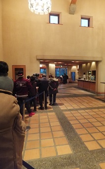 | ・・の予定だったが、見ると入口に長蛇の列。開催中の「ウィンターイルミネーション」目当ての客が早めに食事を済ませようと、並んでいるらしい。 |