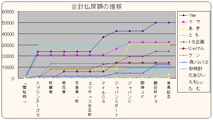 | 2001年秋のG1予想大会 最終成績 | (優勝:Yae 2位:マサ 3位:あき) | ||||||||||||||