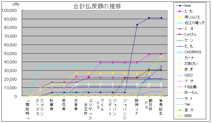 | 2003年秋のGT予想大会 最終成績 | (優勝:blue 2位:とも 3位:偽ソムリエ) | ||||||||||||||