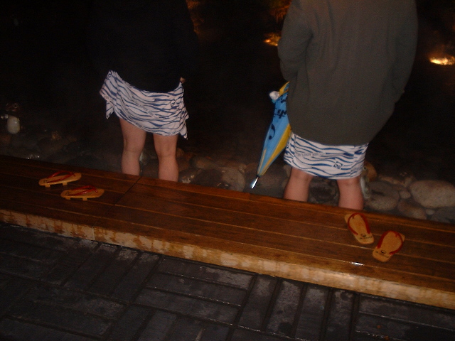 実は足だけ、温泉に浸かるところだった。 下駄を履いて移動していたので、暖かかった。