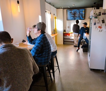 | 樽生は9タップ。缶ビール(10数種類)を買いに来るお客も、多数。 タップルームはカウンター6席ほどで、意外に小さかったです。 |