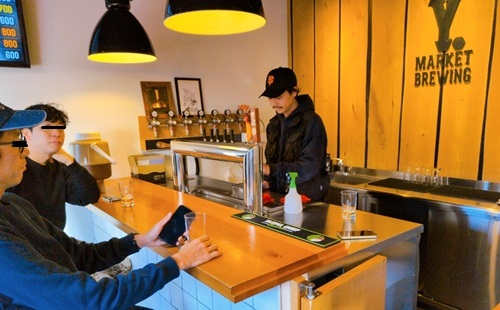 | 「ワイマーケット西工場タップルーム」でいただいた、工場直送ビール。 | |||