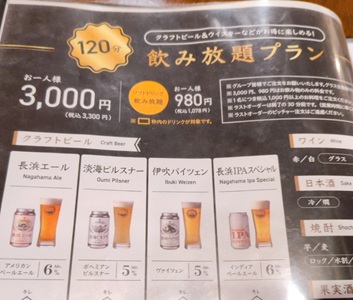 | 長浜IPAスペシャル *ホップを通常の10倍使用。シトラス系の香りと濃縮された苦みは、変わらず健在【B+】。(2024.9.30京都木屋町「長浜浪漫ビール」、再飲。) |